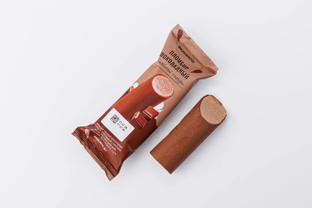 Шоколадный пломбир во взбитой шоколадной глазури — лакомство для настоящих сластён. У мороженого густая нежная консистенция, насыщенный вкус и нежный аромат с нотками ванили. Оно не только поможет охладиться в жаркий день, но и станет отличным дополнением к чашечке кофе. Мороженое изготовлено без заменителей молочных жиров и искусственных ароматизаторов.