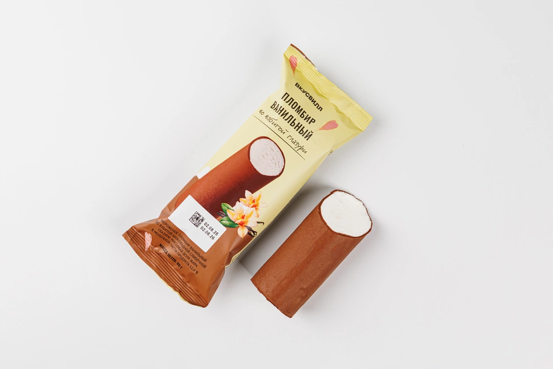 Нежный ванильный пломбир в шоколадной сливочной глазури. Это лакомство не только поможет охладиться в жаркий день, но и станет отличным дополнением к чашечке кофе. Мороженое изготовлено без заменителей молочных жиров и искусственных ароматизаторов.