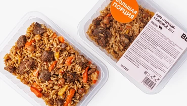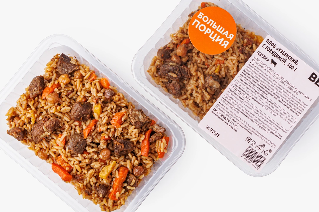 Традиционный узбекский плов с говядиной. Изюм и сушёный барбарис придают блюду насыщенный сладковато-пряный вкус, который особенно оценят любители восточной кухни. Смесь специй добавляют рису приятную пикантность. Большой порции достаточно для двух приёмов пищи.