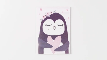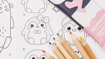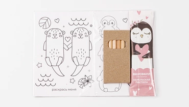 Подарочная открытка-раскраска с пастилой и карандашами (Рисунок с видом пингвина)