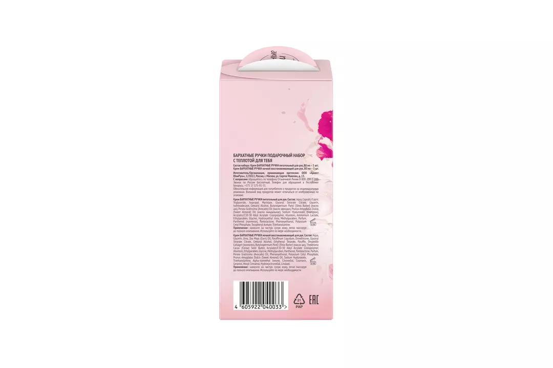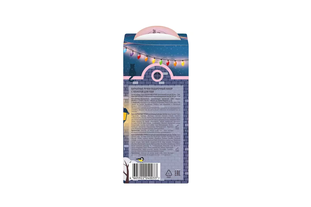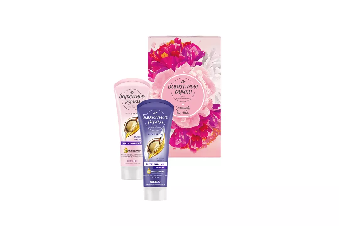 Подарочный набор для женщин Бархатные Ручки С теплотой для тебя включает средства для ухода за кожей рук. В наборе представлены увлажняющий и питательный крем для рук с маслом ши и гиалуроном для дневного ухода и восстанавливающий ночной крем с маслом ши и коллагеном. Они эффективно увлажняют, питают, восстанавливают и смягчают кожу рук, устраняя сухость и придавая ей ухоженный вид. Средства имеют насыщенную, но легкую текстуру, быстро впитываются и не оставляют липкости или жирной пленки. Подарочный набор женский Бархатные Ручки — это оригинальный и полезный подарок на любой праздник. Страна-производитель Россия