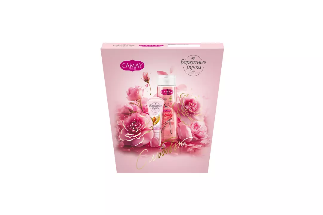 CAMAY + Бархатные ручки Подарочный набор уходовой косметики для женщин — это отличный выбор для презента на любой праздник и просто так. В комплект входят два продукта: гель для душа парфюмированный и крем для рук смягчающий. Парфюмированный гель для душа женский c ароматом, вдохновленным розами из знаменитого парка Багатель в Париже, пробудит в вас волшебное ощущение влюбленности. Вы почувствуете прохладу и свежесть зеленого яблока в верхних нотах аромата, переходящую в окутывающий, теплый, цветочно-медовый запах красных роз. А сладковато-древесные акценты кедра в качестве базовых нот аромата завершают нежное романтическое настроение. Питательный и увлажняющий крем для рук создан специально для смягчения огрубевших участков кожи. Средство устраняет ощущение сухости и стянутости. Страна-производитель Россия