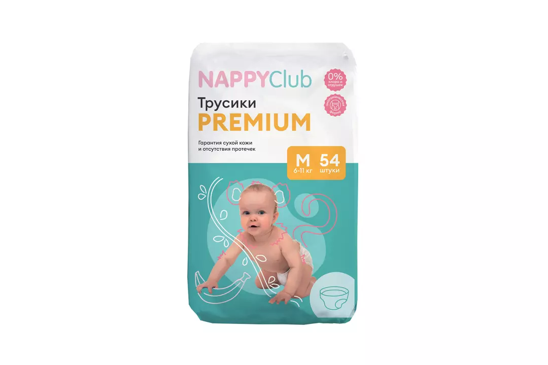 Подгузники-трусики Nappy Club Premium M 6-11 кг 54 шт / Супермаркет