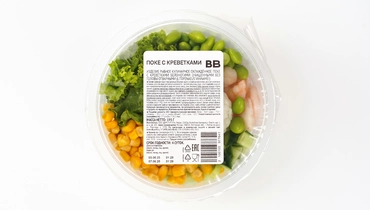Лёгкое и яркое блюдо в азиатском стиле, где каждый ингредиент играет свою важную роль. В основе поке — отварной рис с деликатной заправкой на рисовом уксусе, рядом — хрустящие огурцы, сладкая кукуруза, бобы эдамаме и креветки, отваренные до мягкости. Вкус дополняет заправка с манго, соевым соусом и острой шрирачей — она придаёт блюду пикантный акцент и лёгкую сладость. Листовой салат и посыпка из фурикакэ с кунжутом и морскими водорослями завершают композицию. Поке подаётся «в разобранном виде» — компоненты можно перемешать или есть по отдельности.