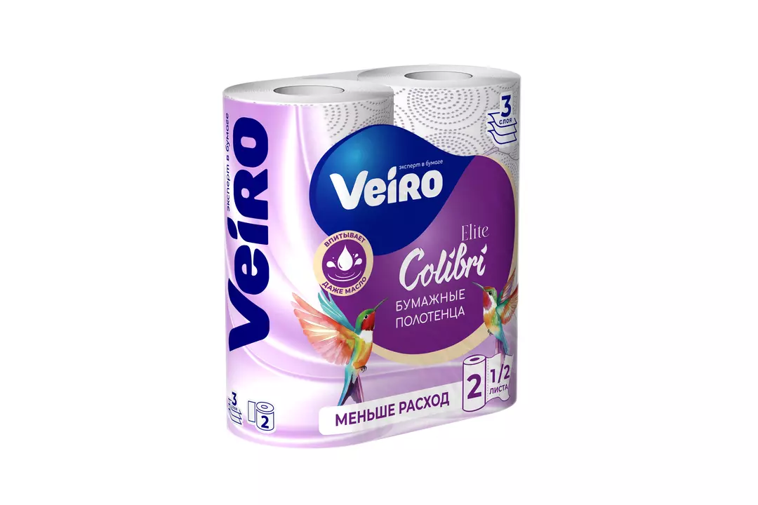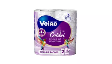 Полотенца бумажные Veiro Elite Colibri 3-слойные 2 рулона