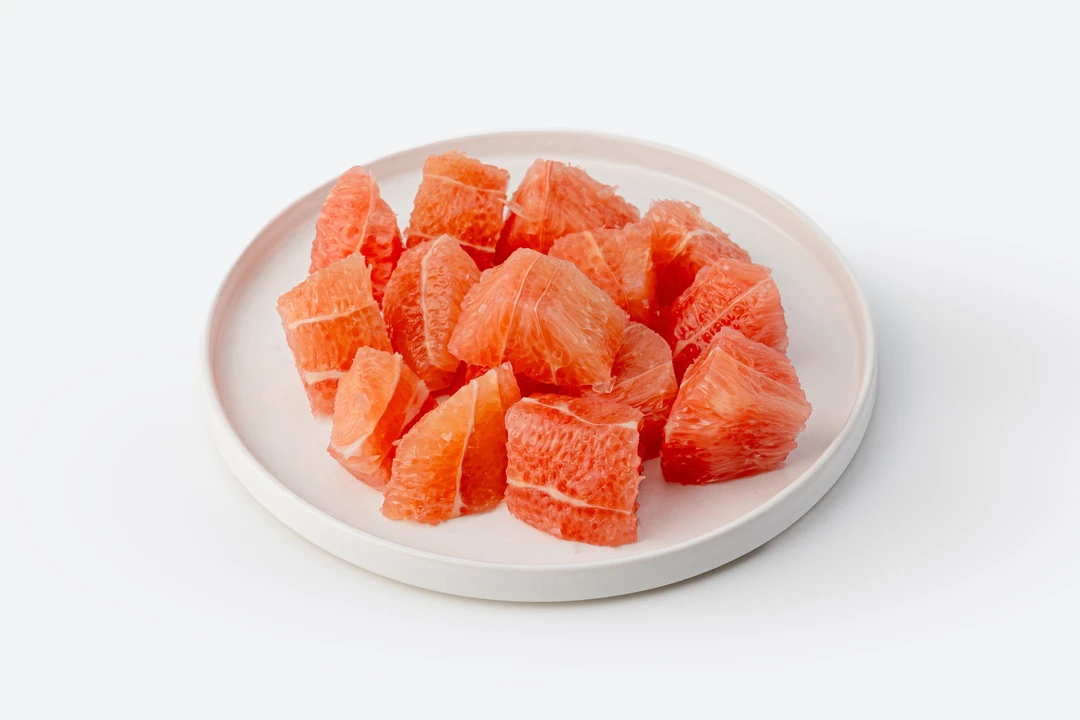 Очищенные дольки помело с освежающим вкусом и легкой горчинкой. Мы убрали всю горьковатую пленку, оставив только сочную мякоть. Удобный стаканчик позволяет наслаждаться этим цитрусовым лакомством где угодно — полезный перекус без лишних усилий.