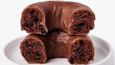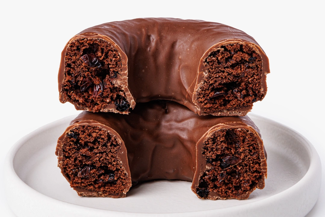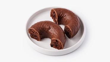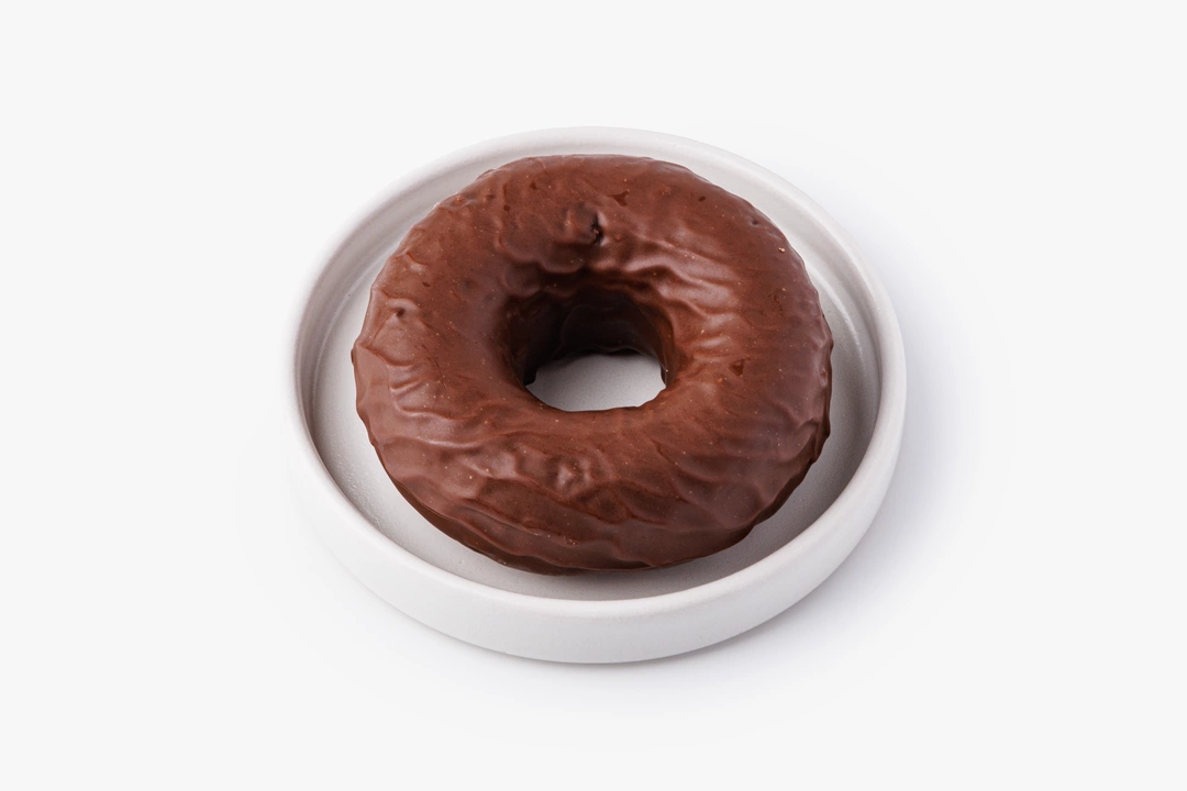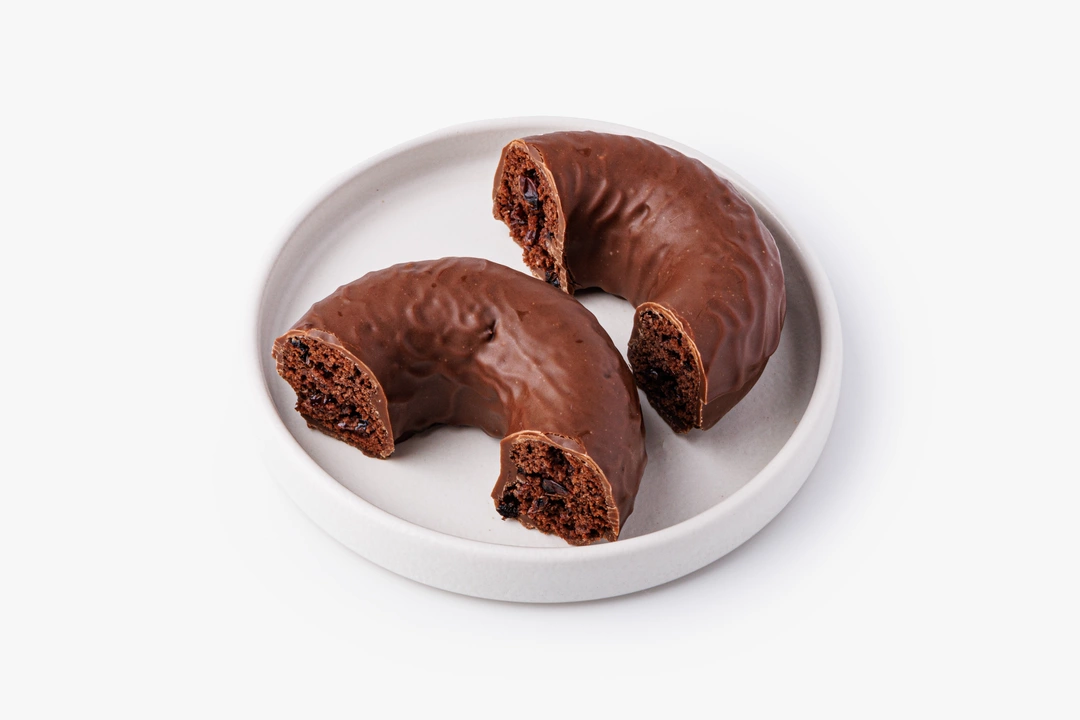 Пончик из безглютеновой муки с брусничной начинкой и шоколадной глазурью. Основа из рисовой, амарантовой и льняной муки сочетается с вяленой брусникой. Глазурь на какао-масле с кокосовым сахаром и кешью добавляет вкусу насыщенность и ореховые ноты.