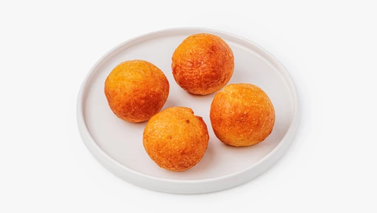 Пышные пончики приготовлены из творожного теста и политы сахарным сиропом с ванильным ароматом. В упаковке 4 штуки.