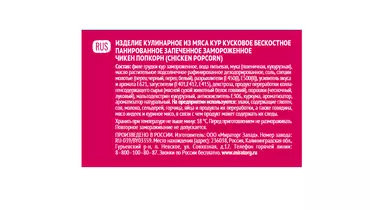 «Это что-то новенькое!» — скажете вы, похрустывая за просмотром фильма поп-корном из курицы. Уверены, что шарики из нежнейшего филе в пикантной панировке, одновременно хрустящие и сочные, не оставят вас равнодушными, и вы с удовольствием запасёте ими морозилку. Страна-производитель Россия