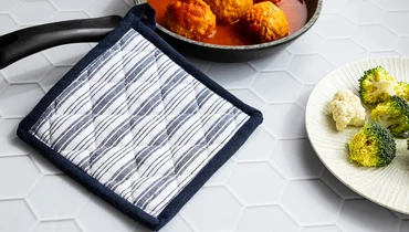Классическая прихватка размером 17×17 см комфортно помещается в руке. Плотный хлопок надёжно защищает от высокой температуры при готовке, легко стирается и быстро высыхает. Петелька позволяет удобно и компактно хранить изделие на крючке. Лаконичный дизайн подойдёт для кухни в любом стиле.