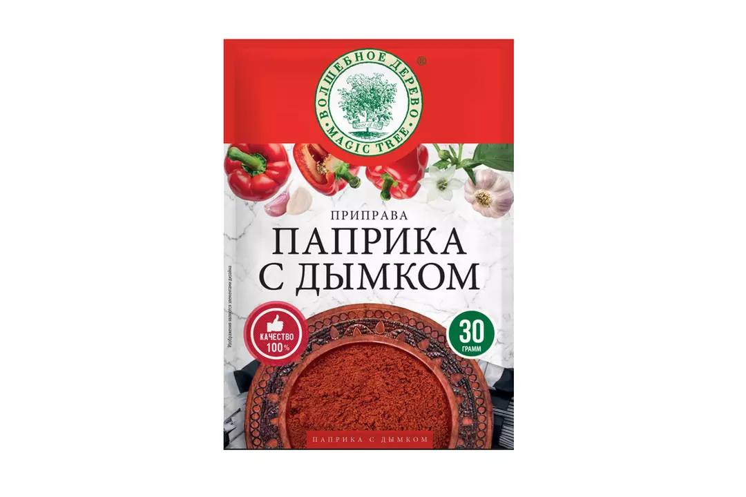 Приправа Паприка с дымком бренда «Волшебное Дерево» – это доступная альтернатива для паприки копченой молотой, яркая приправа с пикантным вкусом копчения. Благодаря высококачественному натуральному составу потребуется лишь небольшое количество приправы, чтобы подчеркнуть вкус супа, картофеля, жаркого, запеченных или жареных блюд из курицы и мяса. Страна-производитель Россия