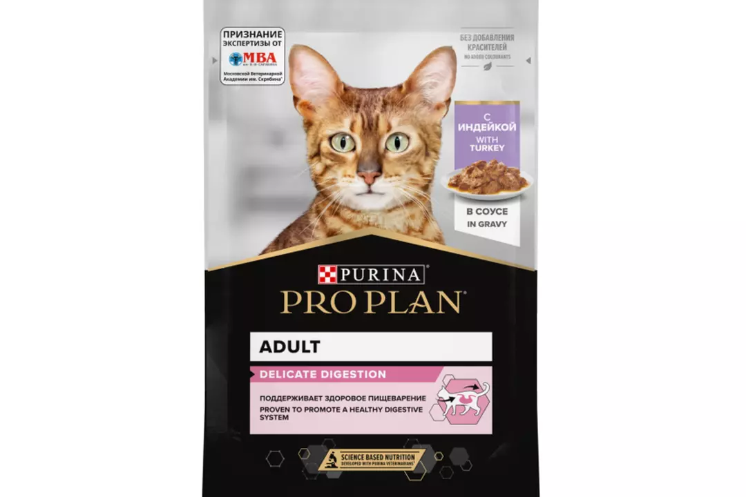 PRO PLAN Delicate Digestion Adult Корм влаж.индейка соус д/кошек с чувствит.пищевар.пауч 85г / Супермаркет