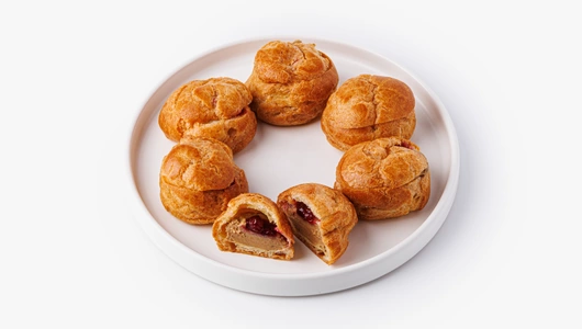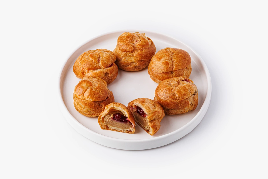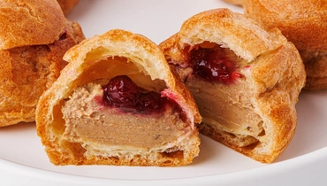 Воздушные профитроли с нежным паштетом внутри — это необычная закуска в лучших традициях французской кухни. Мы приготовили пирожные из заварного теста и начинили их паштетом из куриной печени с овощами и травами. Начинка получилась бархатистой и лёгкой благодаря натуральным сливкам. Для контраста добавили к блюду брусничный соус, придающий ему терпкие и пряные ноты. Профитроли хорошо сочетаются с различными напитками и станут изысканным украшением праздничного стола.