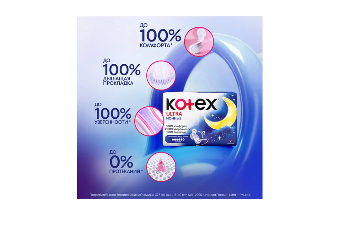 Прокладки гигиенические Kotex Ultra Night 7 шт / Супермаркет