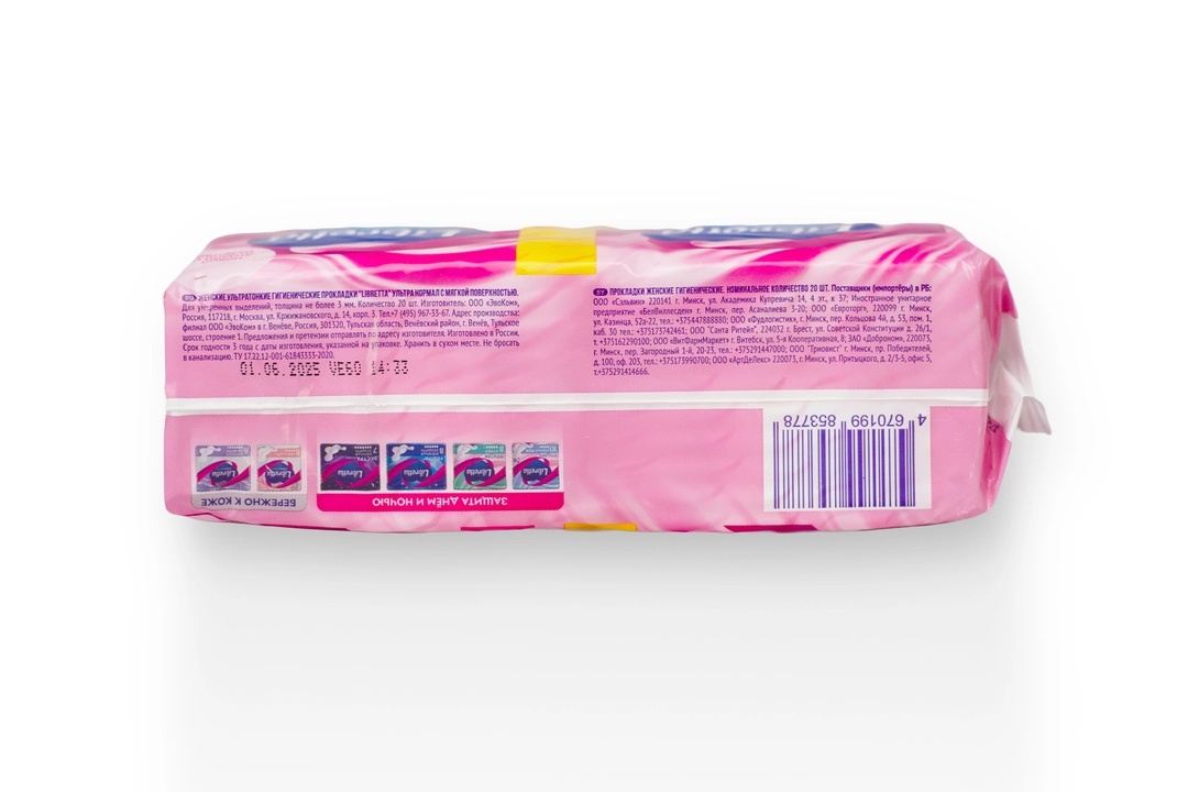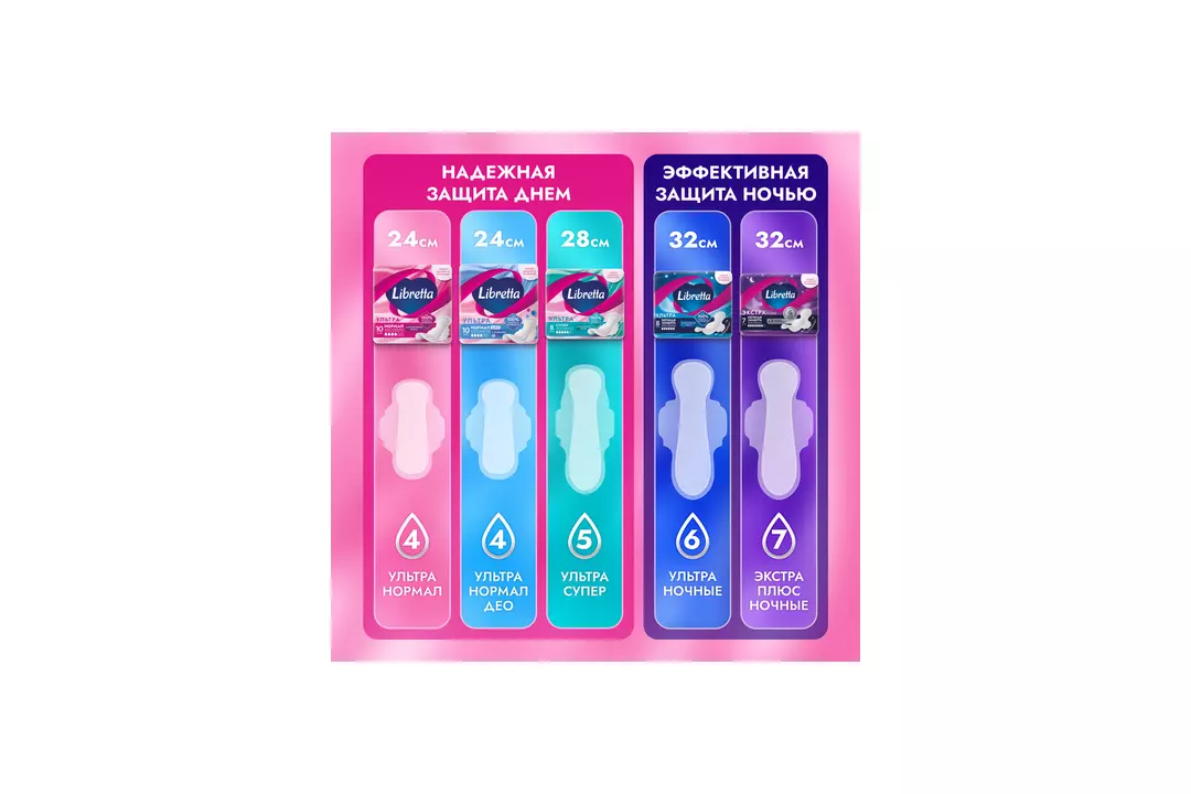 Новый бренд Libretta- это ребрендинг любимых средств женской гигиены Либресс (Libresse) с прежним уровнем качества. Наши прокладки с мягкой поверхностью и анатомической формой обеспечивают до 100% защиты и комфорта*, чтобы ты чувствовала себя в гармонии со своим телом в эти дни.Они быстро поглощают и удерживают влагу, что дает чувство сухости и комфорта. Благодаря анатомической форме прокладка плотно прилегает к телу и надежно защищает от протеканий. А мягкая поверхность и дышащий верхний слой обеспечивают нежное прикосновение.Женские прокладки размера Нормал подходят для умеренных выделений.Толщина не более 3 мм.Каждая прокладка в индивидуальной упаковке.Libretta. Любовь к себе. Страна производитель-Россия