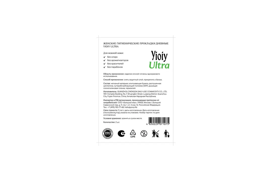 Прокладки гигиенические YIOIY Ultra Дневные 2 шт