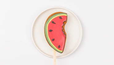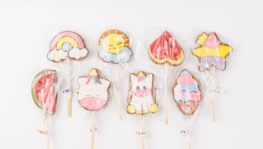 Фигурный пряник на палочке украшен глазурью в яркой летней гамме. В основе тесто с тёплыми нотами имбиря, корицы, мускатного ореха и кардамона. Сладость сбалансирована, вкус получается пряным, но не резким. Текстура плотная, пряник хорошо держит форму. Глазурь покрывает верхнюю часть десерта, она тонкая и приятно хрустит при надкусывании. Лакомство можно подать к чаю или подарить как маленький съедобный сувенир. В ассортименте несколько вариантов дизайна, свои пожелания укажите в комментариях к заказу.