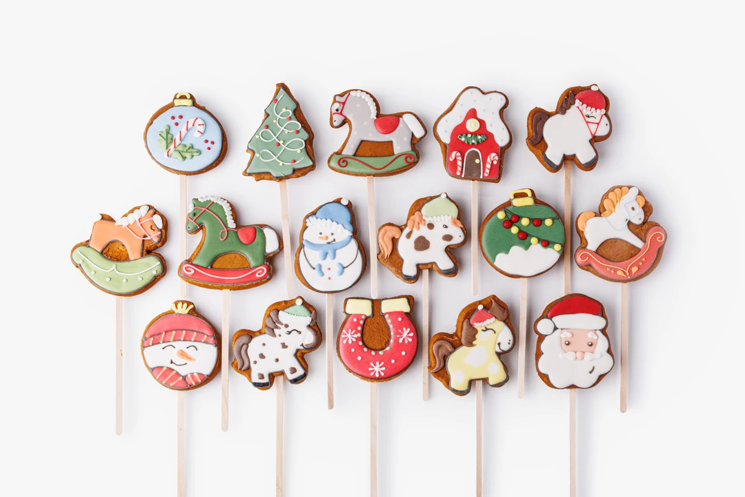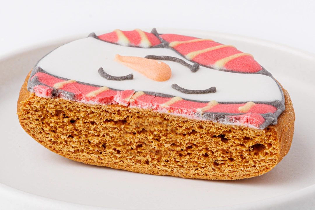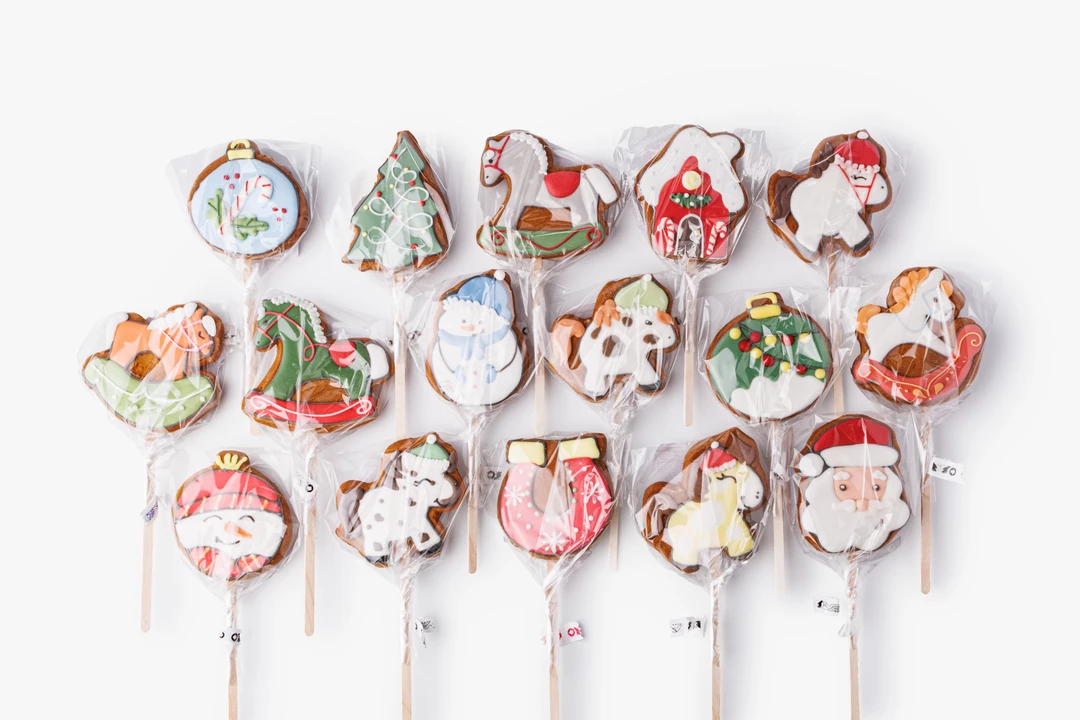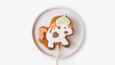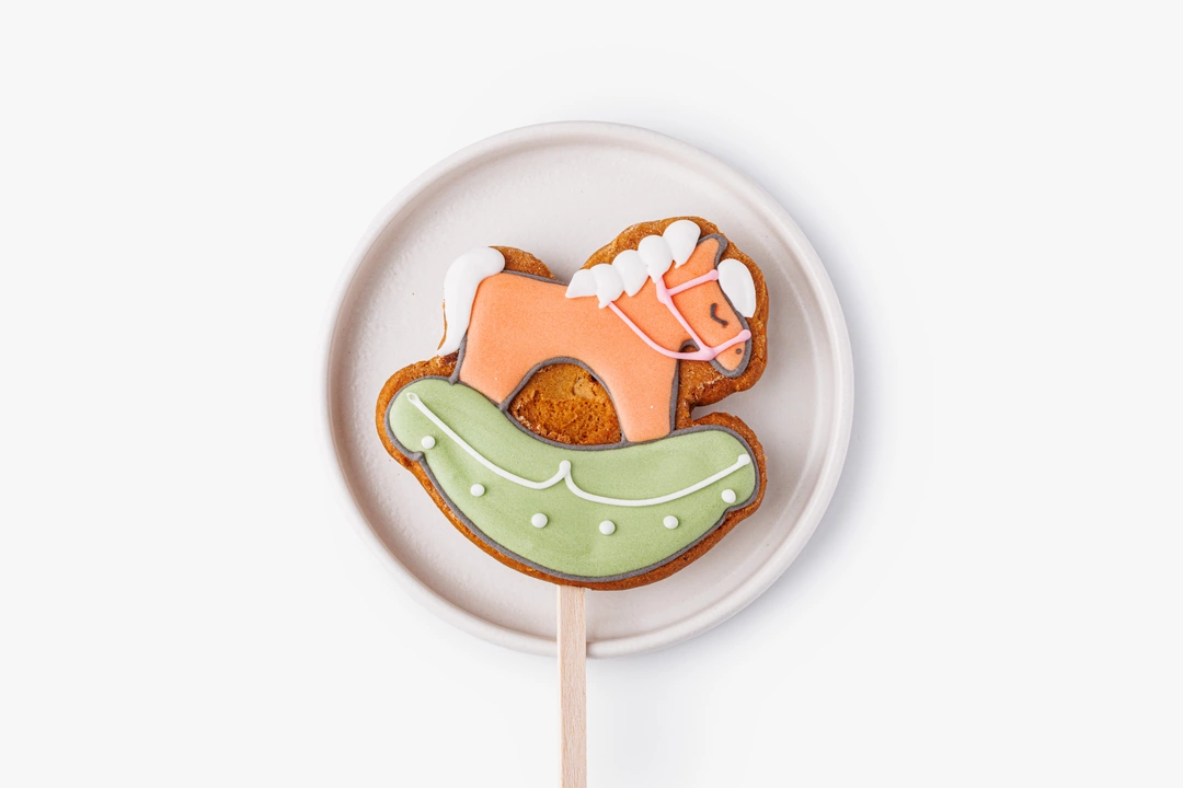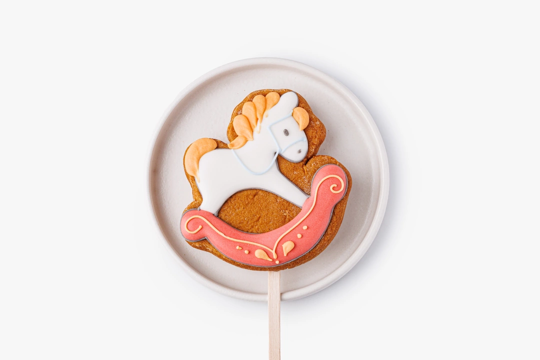 Фигурный пряник из имбирного теста с тёплыми специями. Для сладости мы добавили карамельную патоку, а сверху украсили сахарной глазурью с натуральными красителями. Пряник можно брать с собой на прогулку или в дорогу, ведь его удобно держать за палочку, не пачкая руки. Это любимый десерт и хороший подарок ребёнку любого возраста.