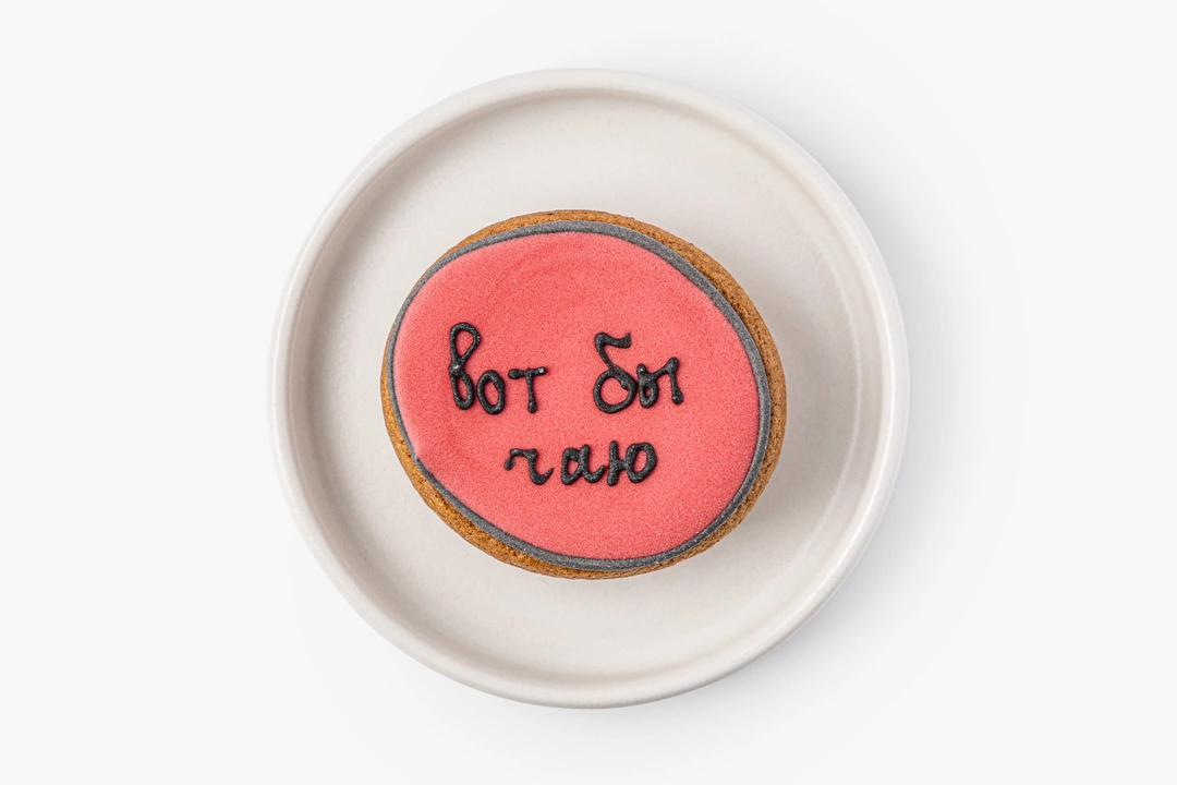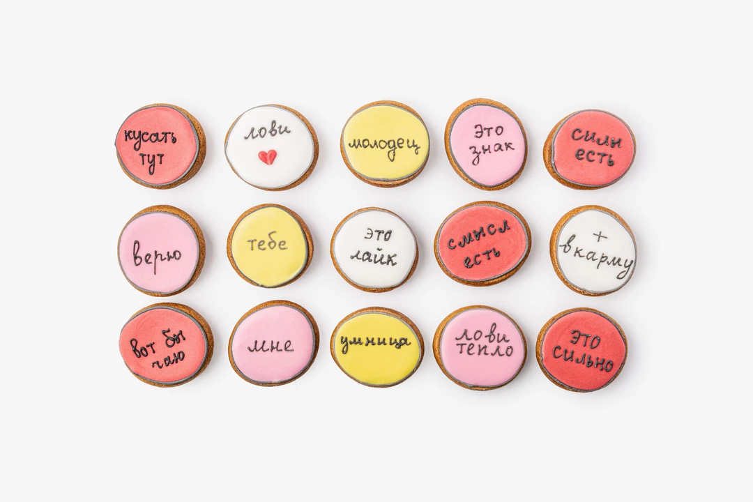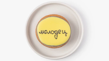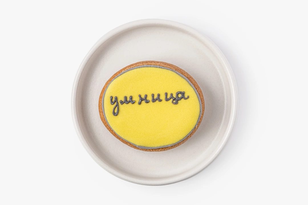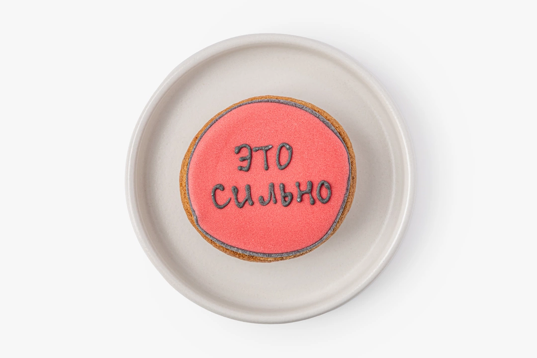 Миниатюрный имбирный пряник с тёплыми специями. В основе — классическое пряничное тесто на сливочном масле с корицей, имбирём, мускатным орехом и кардамоном. Покрыт гладкой сахарной глазурью, для окрашивания которой используются натуральные растительные экстракты.