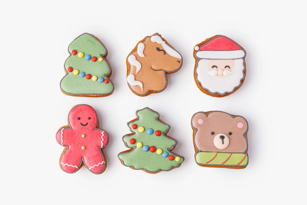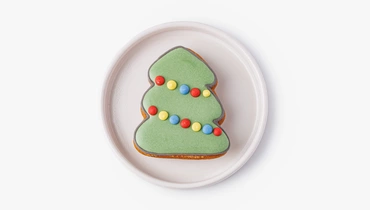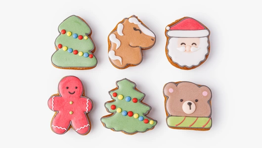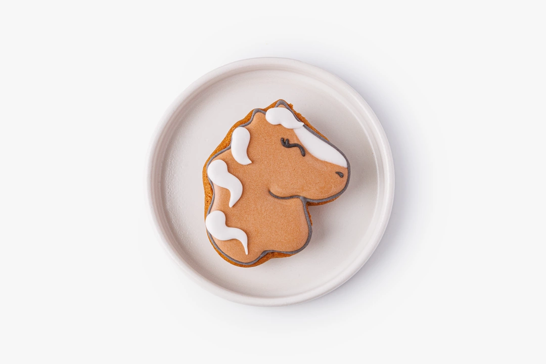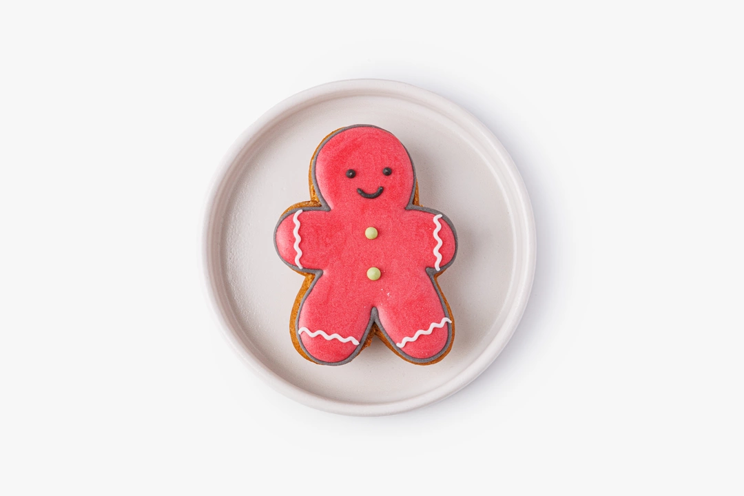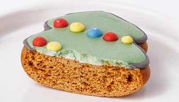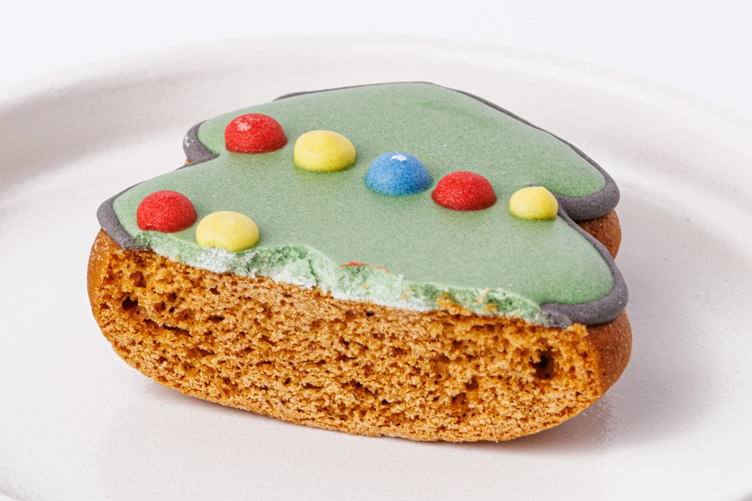 Мягкий имбирный пряник с праздничной глазурной росписью. Тесто с мёдом, корицей, имбирём и мускатным орехом. Украшен цветной глазурью на натуральных красителях.
