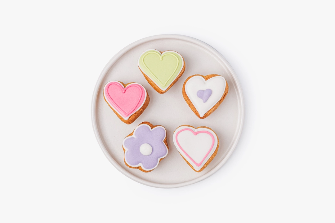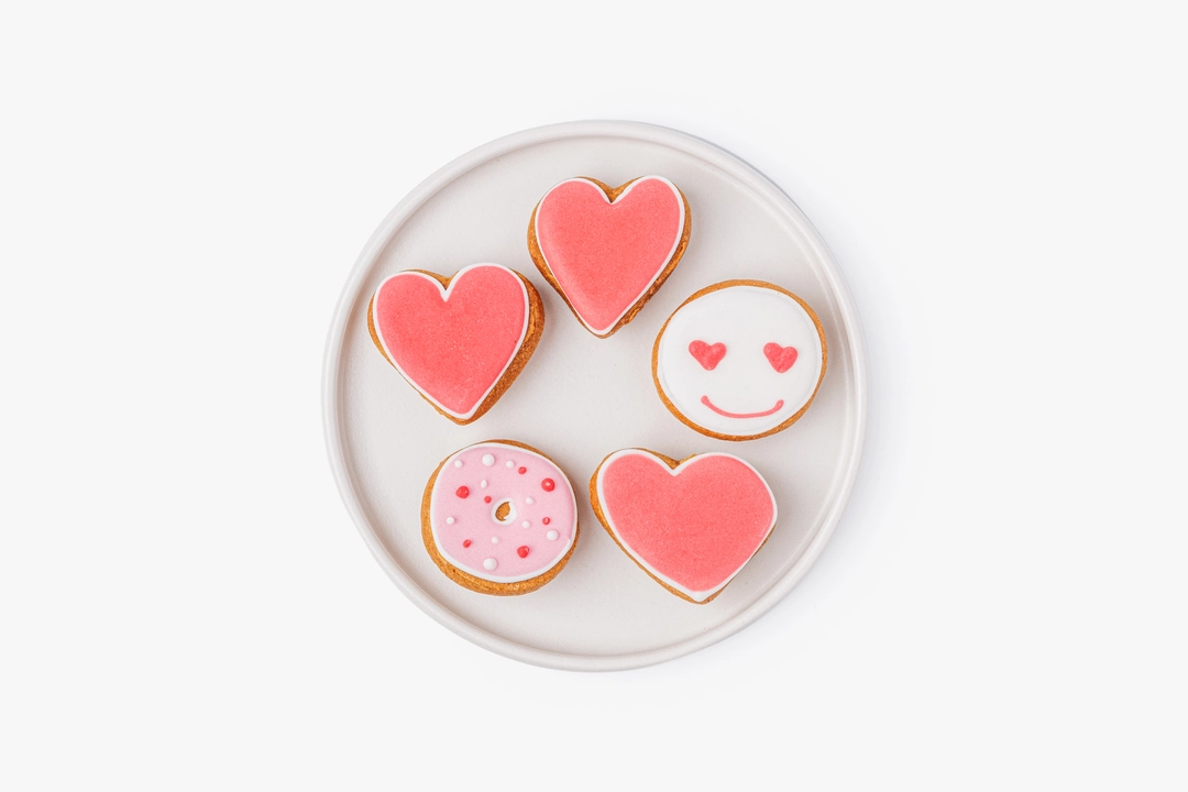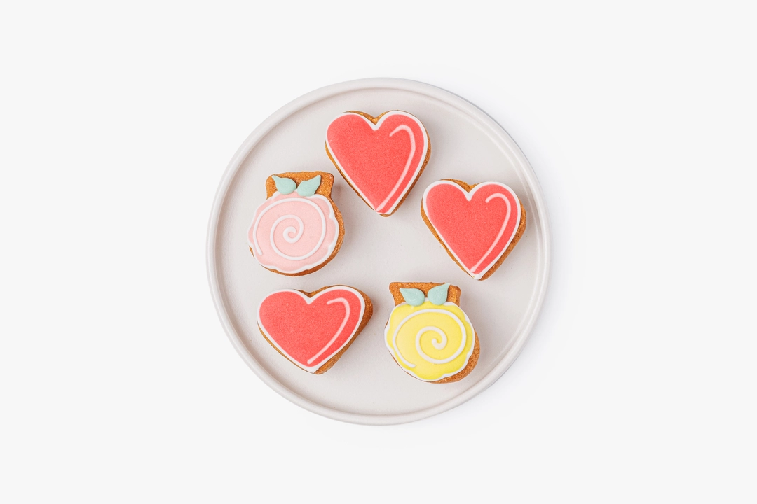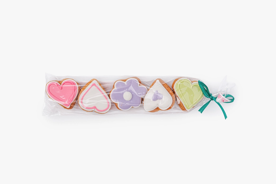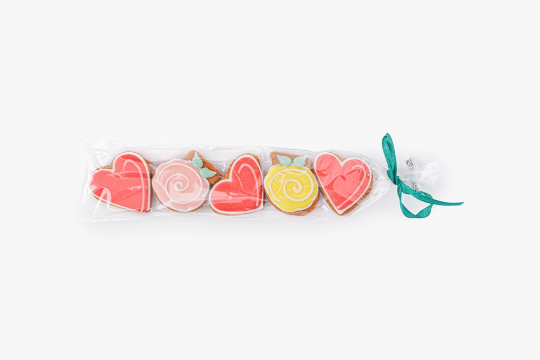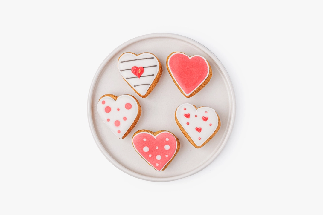 Миниатюрные имбирные пряники в праздничном оформлении — сладкий символ дня влюблённых. Тёплые ноты корицы, имбиря и кардамона в мягкой пряничной основе сочетаются с гладкой сахарной глазурью. Натуральные красители придают пряникам романтичные оттенки, делая каждый похожим на маленькое съедобное признание. Удобный формат позволяет легко поделиться угощением с важным человеком.