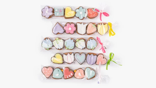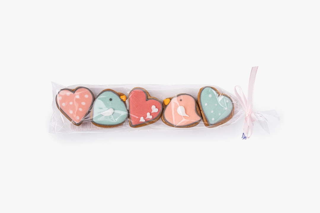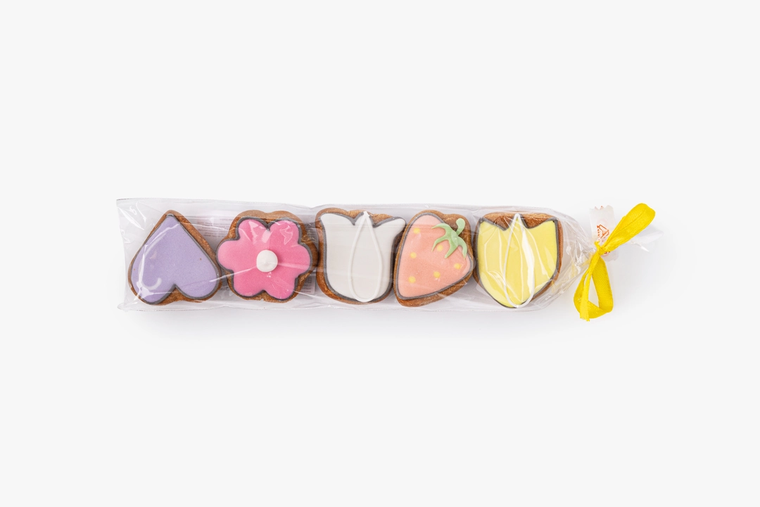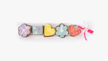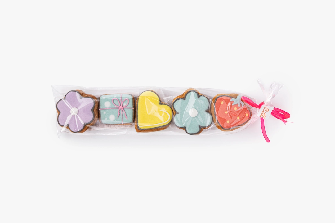 Набор миниатюрных имбирных пряников станет милым знаком внимания или дополнением к подарку тем, кто вам особенно дорог. Каждое лакомство украшено сахарной глазурью с натуральными красителями. Пряная смесь традиционных специй и карамельная патока придают десерту тёплый согревающий аромат и деликатную сладость. Пряники особенно хороши с чашечкой свежезаваренного чая, крепким кофе или какао с молоком.