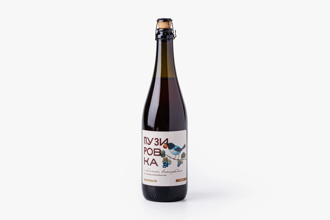 Игристый безалкогольный напиток со сложным фруктово-пряным букетом. Яблочный сок и виноградное сусло создают мягкую сладковатую основу. Сухие ягоды придают напитку глубокий цвет и едва уловимую терпкость, а композиция трав и специй добавляет тёплые ноты. Размешайте пузировку, слегка перевернув бутылку, и аккуратно постучите пальцем по стенкам перед открыванием, чтобы сбить пузырьки. Продукт не содержит консервантов и искусственных красителей.