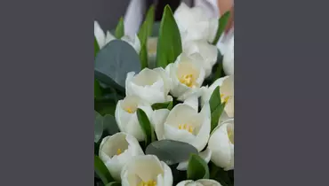 Пышный букет из 25 белоснежных тюльпанов
