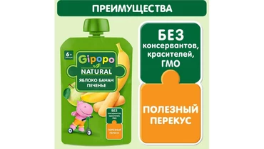 Детские фруктовые пюре с добавлением молочных компонентов GIPOPO в удобной упаковке - пауче подходят для питания малышей с 6 месяцев. В состав детского пюре из яблок и бананов со сливками и печеньем GIPOPO входят только натуральные пюре из фруктов, растворимое детское печенье и сливки из коровьего молока.Фрукты разнообразят рацион малыша, познакомят его с новыми вкусами, сливки и печенье добавят нежный вкус и сытность за счет молочного белка. Детские фруктовые пюре GIPOPO:- Без консервантов, красителей, ГМО- Удобная мягкая упаковка-пауч Пюре в мягкой упаковке дополняет рацион в процессе взросления – удобно взять с собой. Попробуйте также овощные, мясные и мясорастительные пюре GIPOPO. Страна производитель-Россия
