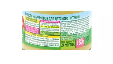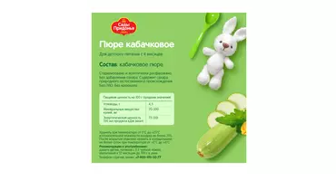 Пюре из кабачков рекомендуется для первого овощного прикорма. Кабачок  содержит полезные микроэлементы - калий, магний, кальций и железо, необходимые для здоровья ребенка. Тонковолокнистая клетчатка, которой богаты кабачки, поможет наладить пищеварение у малыша. Для производства пюре мы используем кабачки, выращенные в собственных хозяйствах компании Сады Придонья