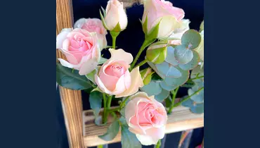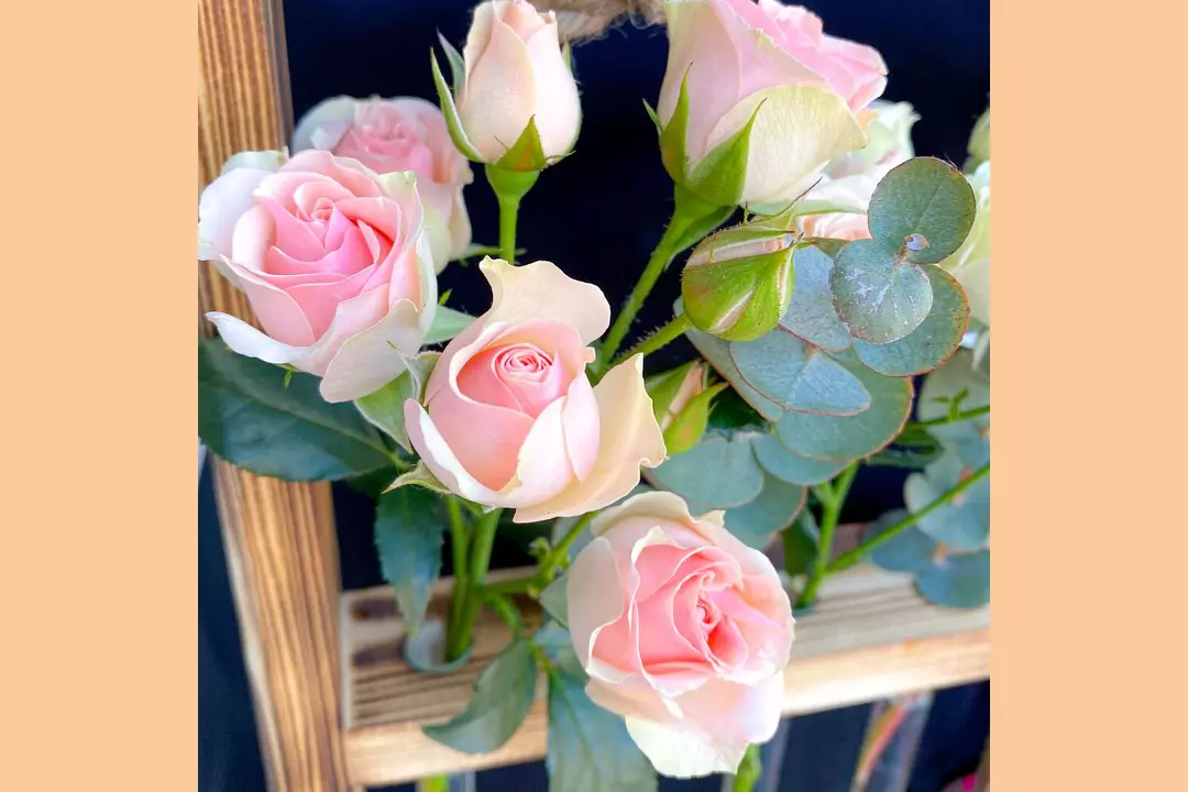 Рамка с розовыми кустовыми розами и эвкалиптом FMART by flowwow