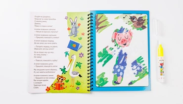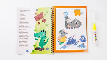Эта водная многоразовая раскраска вдохновлена любимой сказкой Корнея Чуковского — на её страницах оживают знакомые персонажи и строки из стихотворения. Специальный водный маркер проявляет скрытые иллюстрации: стоит провести им по странице, как проявляются изображения. Рисунки пропадают после высыхания, и раскраску можно использовать снова. Удобный формат на спирали, плотные страницы и крупные изображения делают процесс раскрашивания комфортным даже для малышей от 2 лет. Такая раскраска развивает воображение и знакомит ребёнка с классикой детской литературы через игру.