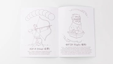 Драконы, единороги и другие загадочные создания из китайских легенд оживают на страницах этой раскраски. Встречаются как знакомые образы, так и совсем необычные персонажи. Рядом с каждым рисунком есть небольшая заметка о происхождении героя и его характере. Картинки крупные, с чёткими линиями, их удобно раскрашивать даже дошкольникам. Такая раскраска подойдёт для спокойного досуга, когда хочется отвлечься и немного погрузиться в фантазию. Рекомендовано детям старше 6 лет.