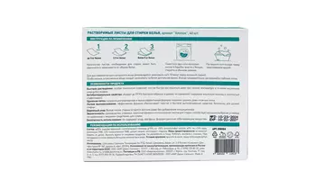 Растворимые листы - это универсальное и эффективное средство для стирки любого белья. - Деликатно удаляют большинство загрязнений - Подходят для цветного, черного, белого белья - Эффективны при любой температуре - Мгновенно растворяются и выполаскиваются без остатка - Для ручной и машинной стирки Страна производитель-Китай