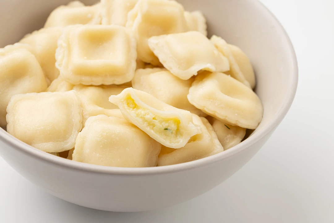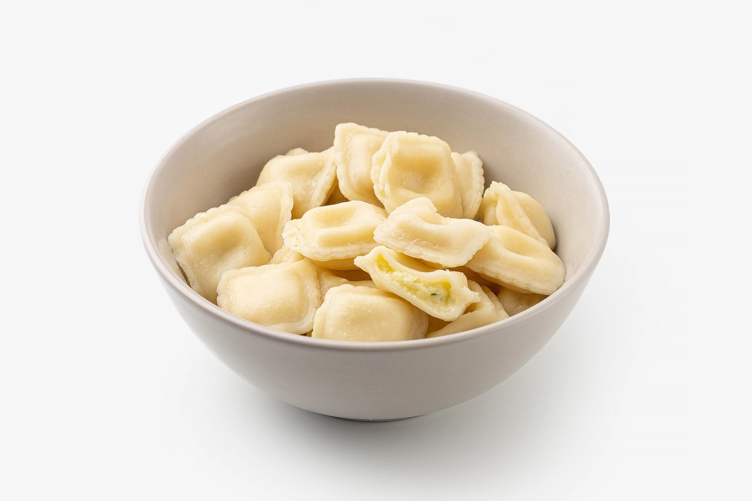 Равиоли мини с сыром сулугуни, яйцом и зеленью
