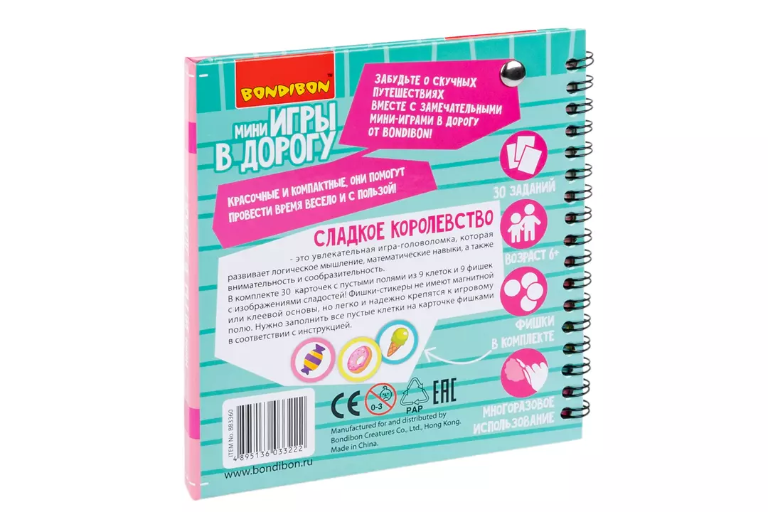 Развивающие игры в дорогу Bondibon Логическая Сладкое королевство