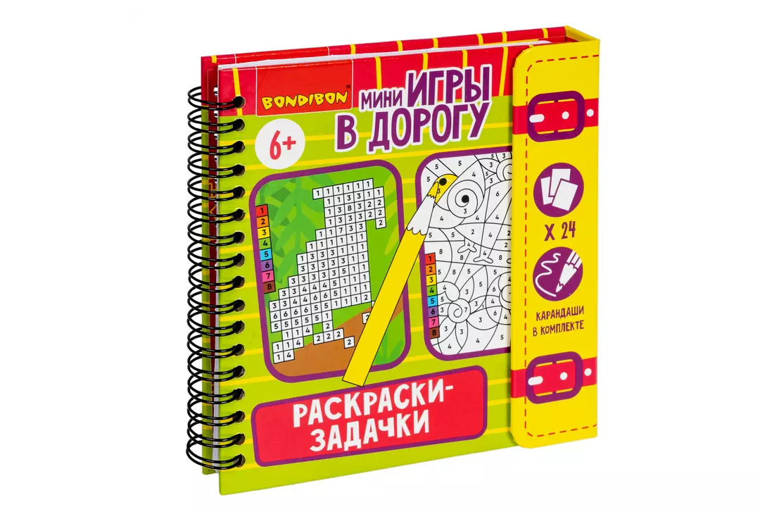Развивающие игры в дорогу Bondibon Раскраски задачки с цветными карандашами