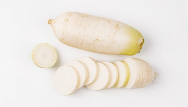 Белые удлинённые корнеплоды с хрустящей мякотью и освежающим вкусом с лёгкой перечной ноткой. В отличие от обычного редиса, дайкон не горчит и обладает более нежной текстурой. Идеален для свежих салатов — тонко нарезанный, он придаёт блюдам приятную свежесть. Хорошо сочетается с огурцами, зеленью и лёгкими заправками. Также подходит для маринования — сохраняет хрусткость и приобретает пикантный вкус. Прекрасно дополняет азиатские блюда, супы и окрошку. Перед употреблением достаточно просто промыть и очистить от кожуры.