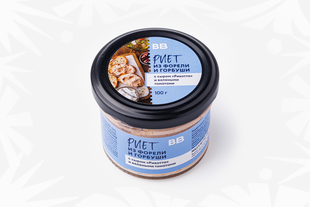 Риет из форели и горбуши с сыром "Риккота" и вялеными томатами, 100 г