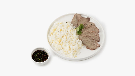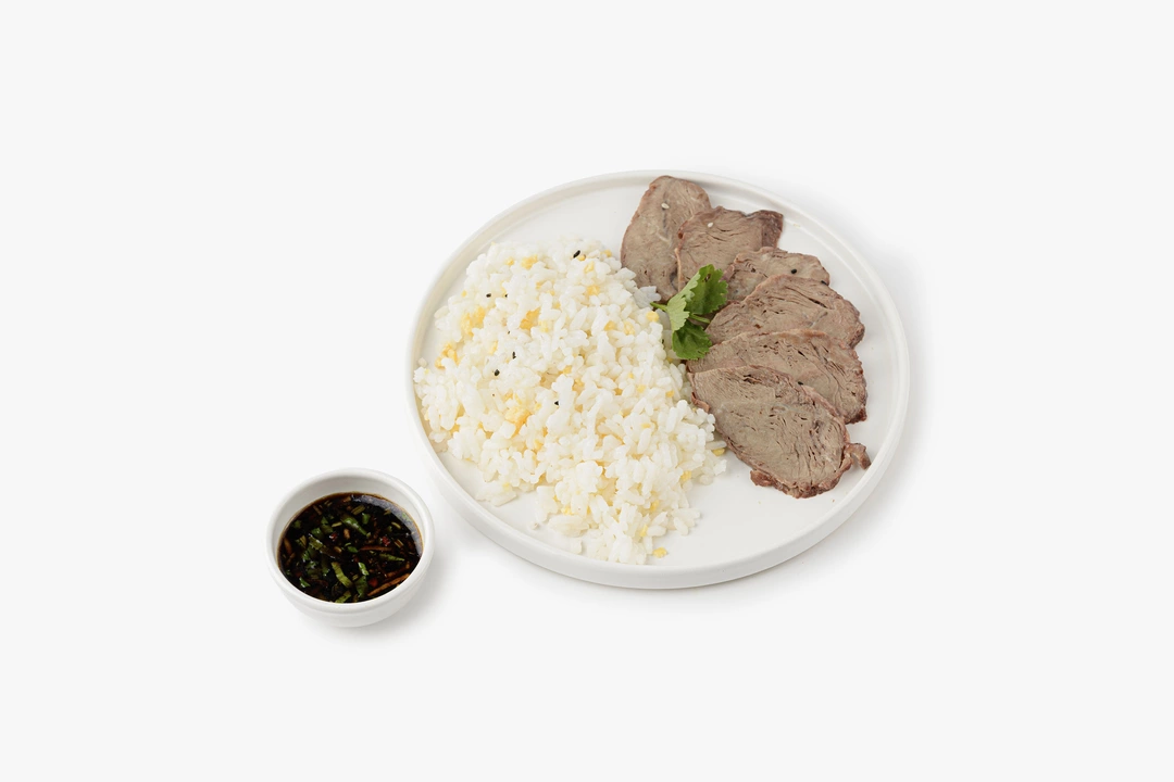 Сытное блюдо с отварным рисом и пряной говядиной в азиатском соусе. Мясо мягкое, нарезано кусочками и пропитано букетом специй — мы томили его с имбирём, корицей, бадьяном и чили. Кунжутное масло и свежая кинза добавляют яркие восточные нотки, а соевый соус с чесноком создаёт сбалансированную солёно-сладкую основу. Блюдо готово — достаточно разогреть его в микроволновке перед подачей, чтобы насладиться сочетанием пряного мяса и риса. Подойдёт для основательного обеда или ужина, когда хочется чего-то сытного и ароматного.