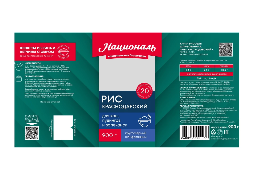 Рис Националь Краснодарский 900 г / Супермаркет