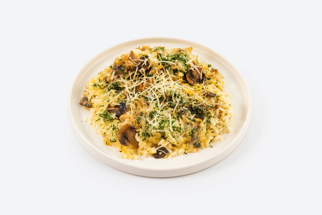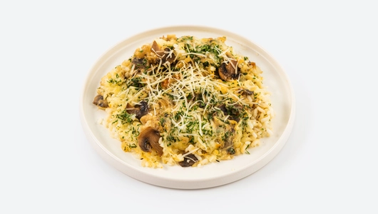Сливочный рис с ароматными грибами и пармезаном напоминает об уютных ресторанчиках северной Италии. Рисовая основа с пассерованным луком и тимьяном пропитана нежным соусом бешамель с нотами мускатного ореха. Свежие шампиньоны и молотые белые грибы создают насыщенный лесной букет, а розмарин добавляет пряную свежесть. Блюдо легко доготовить в духовке — достаточно 10–15 минут, чтобы сыр превратился в золотистую шапочку, а грибная заправка и соус придали ему неповторимый аромат. Дополните его хрустящими гренками и лёгким салатом из руколы, чтобы создать эффект ресторанной подачи. Всё уже готово — вам остаётся лишь насладиться результатом и принимать комплименты вашим кулинарным талантам.