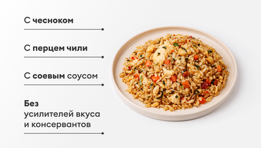 Полезное и питательное блюдо с азиатским колоритом. Приготовлено без ароматизаторов, консервантов и усилителей вкуса. Рис можно подавать отдельно