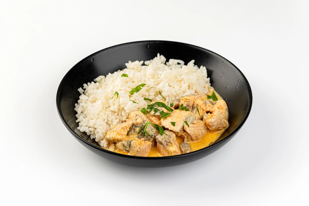 Рассыпчатый отварной рис дополняет филе горбуши в сливочном соусе со специями. Рыба при таком способе приготовления получается мягкой и сочной, а сливки смягчают остроту приправ. Рубленая петрушка добавляет лёгкий аромат и свежий акцент. Это быстрое решение для сытного обеда или ужина. Блюдо приедет к вам горячим и готовым к подаче. Его тоже можно выбрать Любимым продуктом и покупать с приятной скидкой. Возможно наличие мелких косточек или их фрагментов, будьте внимательны.