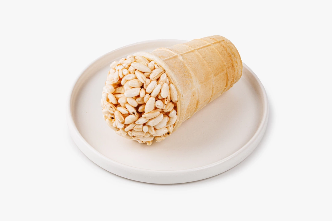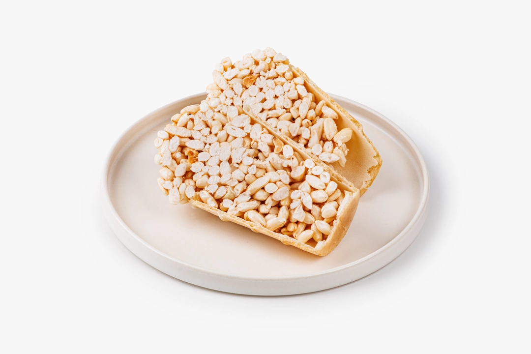 Воздушные зёрна риса и хрустящий арахис собраны в хрустящем вафельном стаканчике и покрыты лёгким слоем сахарного сиропа. Вкус получается простым и узнаваемым — с карамельной сладостью и ореховым акцентом. Такая комбинация напоминает десерты из детства, только в более удобном формате. Стаканчик удобно держать в руке, а лакомство не крошится и не липнет к пальцам. Подойдёт к чаю или в качестве перекуса в течение дня.