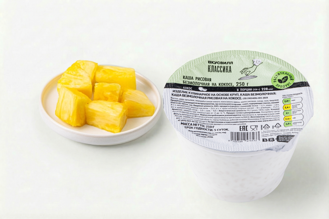 Рисовая каша на кокосовом молоке со свежим ананасом