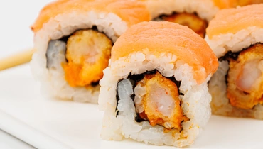 Нежные роллы с креветкой-темпура и острым соусом. Состав проверен: нет усилителей вкуса, консервантов и антибиотиков