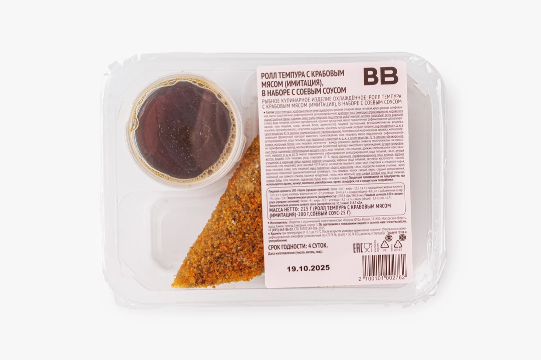 Ролл темпура с крабовым мясом (имитация) с соевым соусом