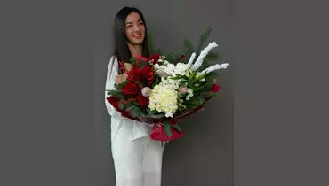 Погрузитесь в атмосферу зимней сказки с нашим авторским букетом, где сочетаются нежность роз, пышность гортензии и очарование маттиолы! Этот букет – настоящее произведение искусства, созданное для того, чтобы дарить тепло и уют в холодные зимние дни. В самом сердце композиции – пять роскошных роз сорта “Эксловер”, чьи бархатистые лепестки и благородный оттенок притягивают взгляд и наполняют букет элегантностью. Гортензия, с ее пышными соцветиями, добавляет букету объема и нежности, а нежные веточки маттиолы привносят нотку утонченности и зимней свежести. Для создания зимнего настроения, флористы добавили в букет заснеженные ветки, которые словно припорошены инеем, а также две веточки альстромерии, которые придают букету легкость и очарование. Два декоративных яблочка и веточка илекса добавляют ярких акцентов и создают атмосферу праздника. Завершающим штрихом служит нобилис – его ароматная зелень привносит нотку свежести и лесного очарования. Все эти прекрасные цветы и декоративные элементы искусно собраны в стильную дизайнерскую упаковку, которая подчеркивает их красоту и изысканность. Каждая деталь этого букета продумана до мелочей, чтобы создать гармоничную и запоминающуюся композицию. Высота букета составляет 50 см, а ширина – 60 см. Время сборки – 40 минут, что говорит о профессионализме наших флористов и их внимании к деталям. Этот авторский зимний букет – идеальный подарок для тех, кого вы цените и любите. Он станет прекрасным украшением любого дома или офиса и подарит ощущение тепла, уюта и праздника в холодные зимние дни.