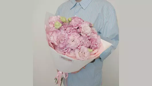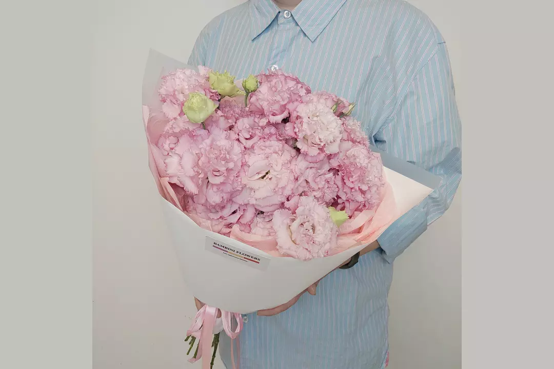 ак нежнейшее облако сахарной ваты! Букет Розовая пудра от Bambini Flowers - это воздушные эустомы, словно созданные для самых сладких грез. Уход: Обрезайте стебли, меняйте воду и дарите им немного внимания, и эти нежные создания будут радовать вас долго! Bambini Flowers: Мы создаем букеты с любовью и трепетом, и всегда рады помочь вам с выбором идеального подарка!